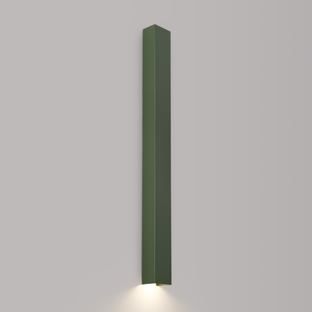 Nowoczesny kinkiet FREYA zielony oliwkowy – prosty funkcjonalny design idealnie odnajdzie się w nowoczesnych, minimalistycznych oraz loftowych wnętrzach. Surowość formy jest tu tylko pozorna: prosty geometryczny kształt i spokojny odcień zieleni przełamane zostały światłem z żarówki GU10 w wybranej przez Klienta barwie. Oprawy miękko podświetlają powierzchnie ściany, tworząc przyjazną atmosferę wnętrza.
