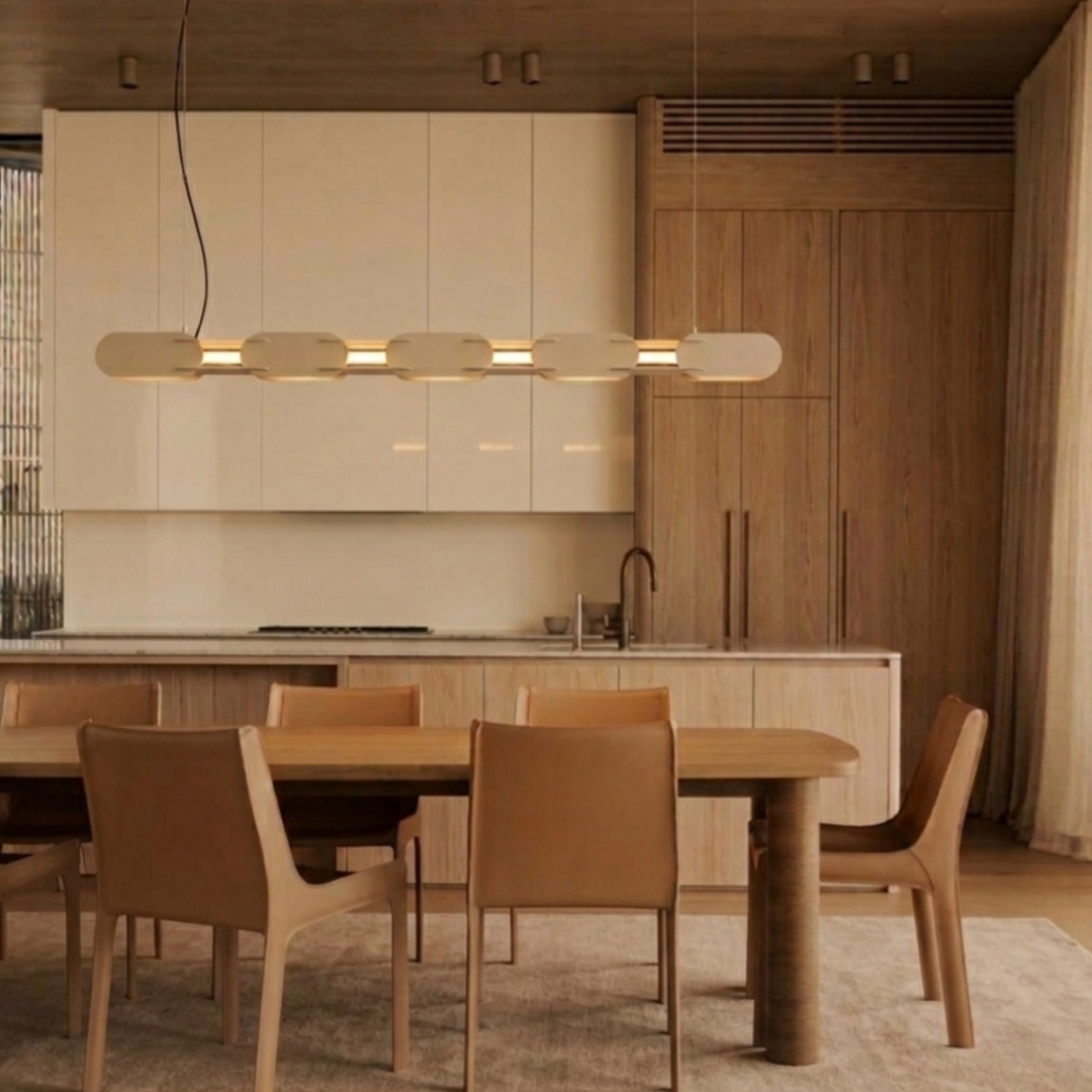 Kolekcja CHAIN łączy prostą uporządkowaną formę z miękkim, rytmicznie prowadzonym światłem. Lampa wisząca w dwóch długościach — 91 i 158 cm — oraz kinkiet tworzą spójną nowoczesną serię. Motyw powtarzalnych ogniw nadaje oprawom wyrazisty charakter a jednocześnie wprowadza estetykę i ład przestrzeni. Dodatkowym atutem kolekcji jest zintegrowane sterowanie PUSH-DIMM/DALI, które pozwala wygodnie regulować natężenie światła.