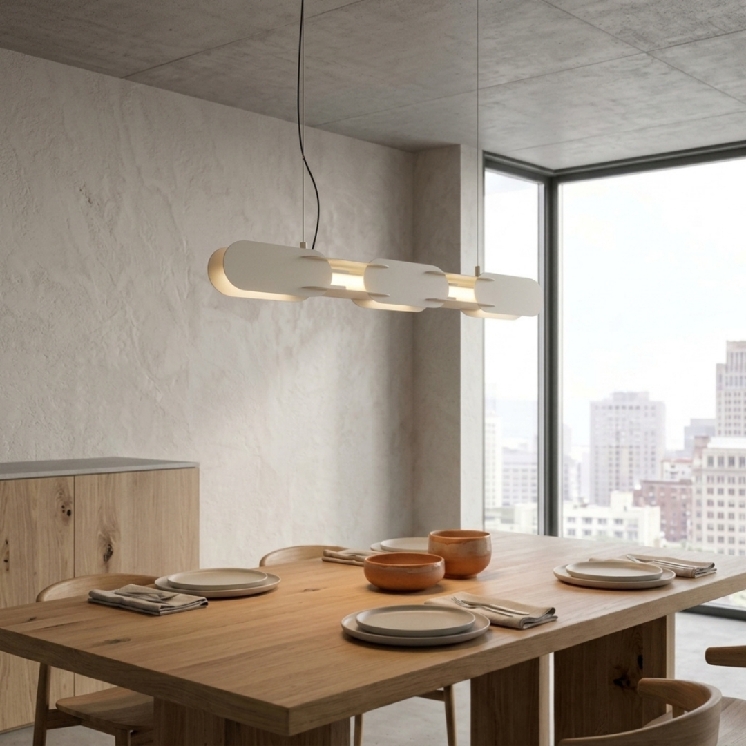 Kolekcja CHAIN łączy prostą uporządkowaną formę z miękkim, rytmicznie prowadzonym światłem. Lampa wisząca w dwóch długościach — 91 i 158 cm — oraz kinkiet tworzą spójną nowoczesną serię. Motyw powtarzalnych ogniw nadaje oprawom wyrazisty charakter a jednocześnie wprowadza estetykę i ład przestrzeni. Dodatkowym atutem kolekcji jest zintegrowane sterowanie PUSH-DIMM/DALI, które pozwala wygodnie regulować natężenie światła.