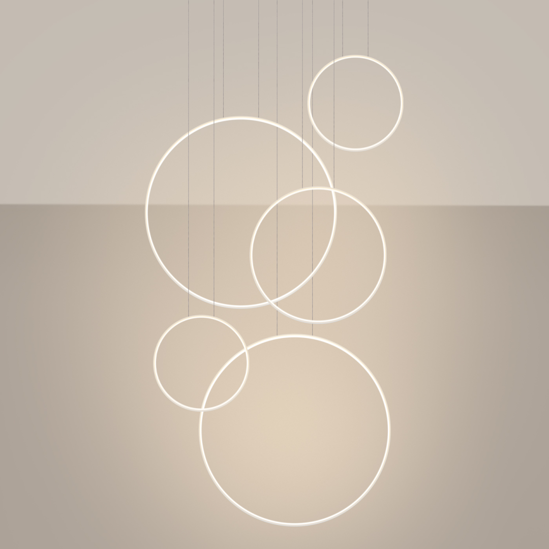 Lampy RIO harmonijnie łączą geometryczną formę z funkcjonalnością. Wbudowany moduł LED zapewnia wysoką wydajność świetlną, energooszczędność i naturalne odwzorowanie barw. Trwałe materiały i precyzyjne wykonanie gwarantują wieloletnią niezawodność. Oferując spójną linię estetyczną, RIO dostępne jest jako plafon, pionowa lampa wisząca i żyrandol w wersji pojedynczej oraz jako kompozycja 2 lub 3 ringów. Idealnie dopełnia zarówno przestrzenie mieszkalne, jak i komercyjne, akcentując ich nowoczesny charakter.